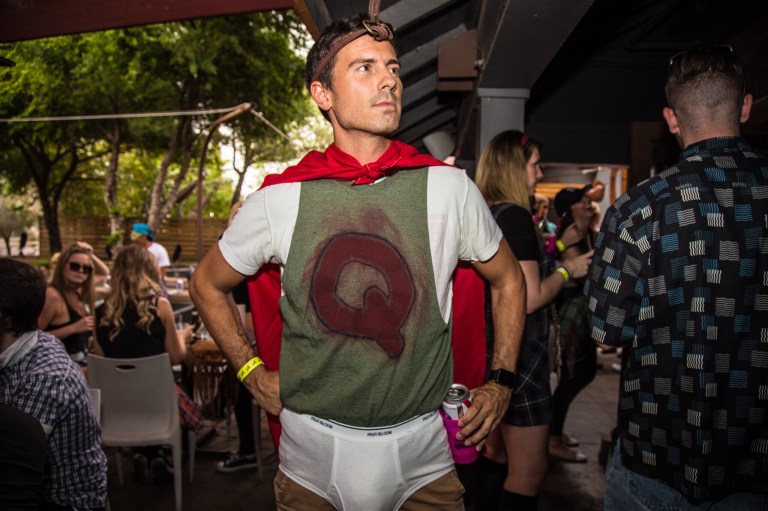 As the afternoon played on, downtown Austin became a parade of parachute pants, high ponytails and Tommy Hilfiger jeans. After the millennial crowd got its fill of fun at Rustic Tap, it was time to cruise down the road to the rest of the participating bars that included Rattle Inn, Kung Fu Saloon, Happy Chicks, Pecker Heads, 508 & Pelons, The Lodge, Burnside Tavern, Little Woodrow’s, Bikinis and Green Light Social. At indoor/outdoor dog friendly bar Parlor and Yard, folks were braving the cold to play ping pong and cornhole. While indoors the music was lit and the bar was filled with uninhitbed dancers, 90’s fashionistas and a random guy in a t-rex costume keeping the party weird.