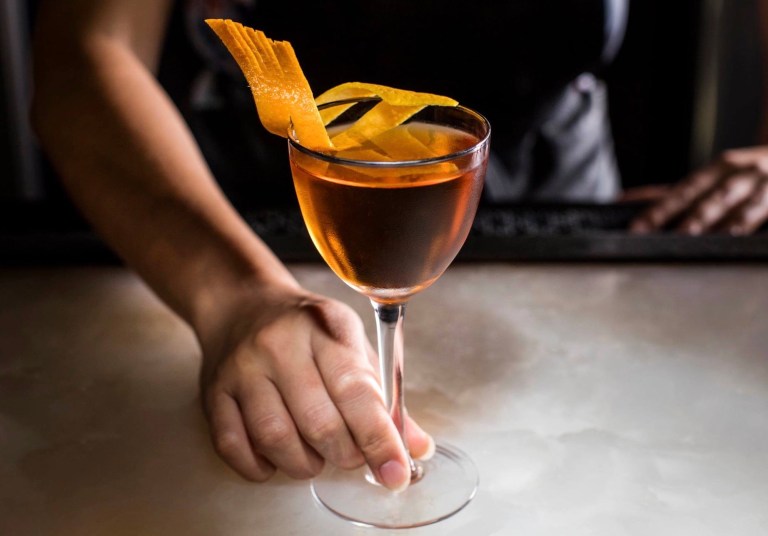 This classy west 6th cocktail bar is for the fancy drinkers who take their cocktails with Cuban cigars and velvet curtains. The airy, industrial-chic Roosevelt Room features an intimate upstairs lounge where guests can cozy up with Manhattans and Old Fashioneds and watch the evening unfold below them. The walls are exposed brick, the ceilings are lofty with large industrial pipes and the furniture is sultry and black. The cocktail menu features house classic likes the Buck to the Future with rye whiskey, sherry, amaro nardini, strawberry basil puree, ginger syrup and barrel-smoked cracked black pepper and the smoky Cigar Box with mezcal, smoked black tea syrup, lavender bitters and tobacco essence. But Roosevelt Room’s masterful drink menu also pays homage to the different eras of craft cocktails, from the early years (pre 1800s), turn of the century and the Tiki Era to Prohibition, Post Volstead and the Modern Classics. Each category features creatively crafted cocktails that are designed to delight the senses and captivate the tastebuds. And Roosevelt has even curated a special non-alcoholic drink menu with a few intriguing amalgamations that can definitely hold their own among the regular craft cocktails! The beautiful Glitter & Marigold comes with orange juice, orange flower water, pistachio extract, vanilla bean, cream, cinnamon powder and a delicate citrus sculpture to top it off. The Castaway is breezier and more tropical with mint, cucumber, lime juice, coconut cream, gingerbeer and sweetgrass tincture. And finally for a subtle yet highly sophisticated substitute to the classic martini, Roosevelt Room offers the N’artini with Seedlip spice, juniper tea, clarified Asian pear juice, pine needles, rosemary, cucumber, winter spices, verjus, orange and lemon peel. All three drinks are equally delightful in their own way and you won’t get questioned about what you’re drinking if you’re out with friends or coworkers.